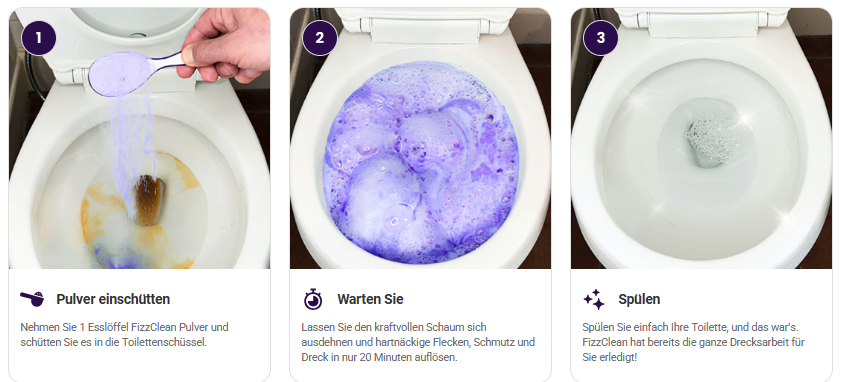 Haftungsausschluss: Die auf dieser Website dargestellten Ergebnisse basieren auf individuellen Erfahrungen und können variieren. FizzClean® ist ein Reinigungsprodukt und kein Medikament. Die Informationen auf dieser Seite dienen ausschließlich Informationszwecken und ersetzen keine professionelle Beratung.